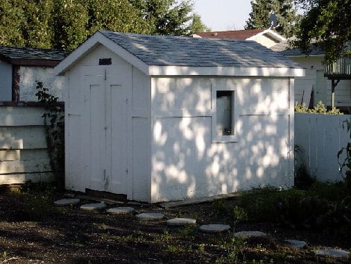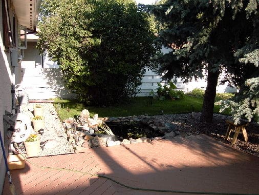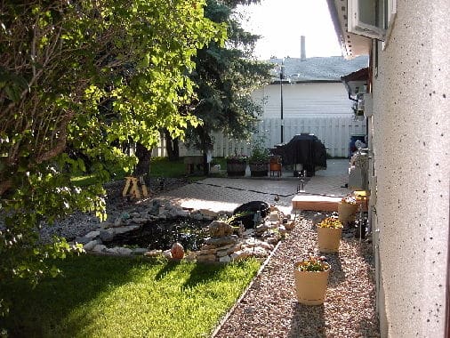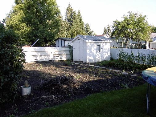 - yard is 65' x 155' deep, no back lane, with mature landscaping, fruit trees and large garden plot with new garden shed on concrete pad